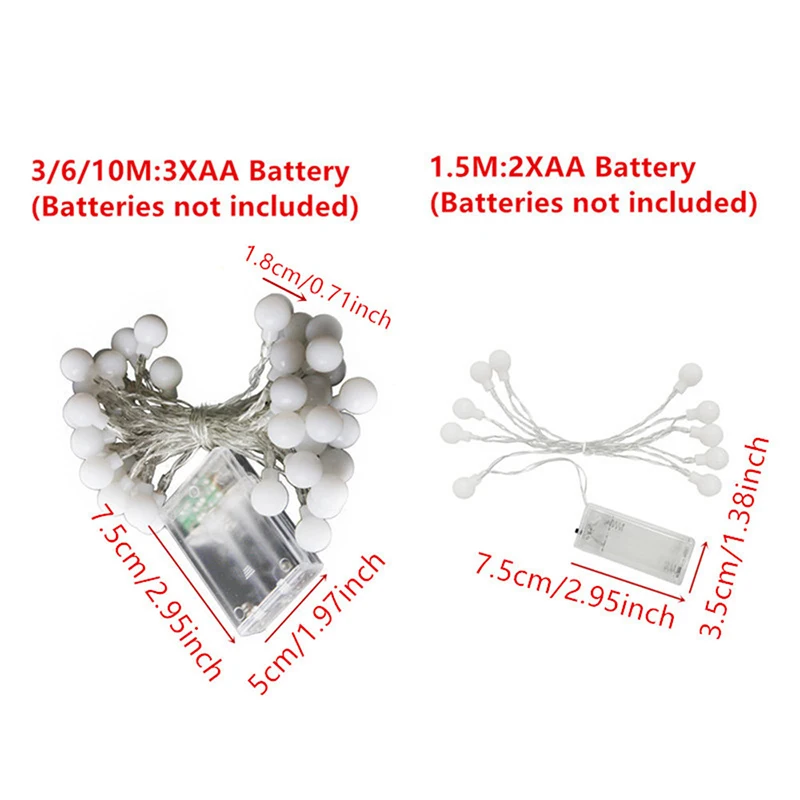 - 1.5m 10LEDs: Funciona con 2 pilas AA (no incluidas).